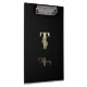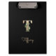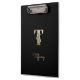 El elegante portapapeles negro presenta un monograma botánico dorado en el centro.