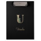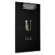 El elegante portapapeles negro presenta un monograma botánico dorado en el centro.