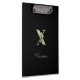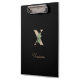 El elegante portapapeles negro presenta un monograma botánico dorado en el centro.