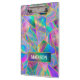 Elegante moda holográfica faux dorado geométrico Portapapeles. Para que sea extra especial, también se monogramaliza y personaliza con nombre o iniciales o cualquier texto que desee, haga clic en el enlace "personalizar más adelante" y utilice la herramienta de diseño para modificar el diseño si lo desea. Bonito portapapeles moderno y fresco para la escuela, la universidad o el trabajo. Muestra tu estilo personal, luce a la moda, a la moda y se siente elegante alrededor de tus amigos con un diseño único en tu Portapapeles o lo personalizar sobre otro producto de tu elección. Ya sea para día de San Valentín, Navidades o como regalo en general, es una gran idea de regalo para cualquier chica que ame las cosas modernas y de moda. NOTA: Se trata de gráficos impresos planos, sin purpurinas, joyas ni piezas elevadas.