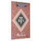 Manténgase al día con sus notas importantes utilizando este Portapapeles personalizado de escritura Rosa de oro de la enfermera RN. Es moderno y está diseñado en ambos lados con un fondo de color rosa falso purpurina. El centro tiene un símbolo blanco caduceus y "RN" en el centro del marco de diamante gris y rosa. Personalizado con el nombre en la escritura de caligrafía de moda blanca. Perfecto para un regalo de graduación de enfermeras registradas.