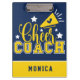 Muestra tu entrenador favorito de animador un espíritu de equipo con este portapapeles de personalizable en los colores de tu escuela de azul real, amarillo y blanco.