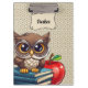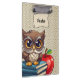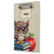 Este portapapeles presenta un fondo de patrón dorado, adornado con un búho de libro y un ilustracion de manzana, perfecto para volver a la escuela. Con un espacio dedicado al nombre de tu hijo, este es realmente un tipo de suministro escolar que usarán en los próximos años.