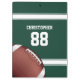 Un diseño de estilo jersey deportivo fresco en verde con rayas blancas y texto de personalizable en blanco por su nombre y número. El diseño también incluye una selección de fútbol. Ideal para futbolistas, aficionados al hierro o entrenadores de fútbol. Fabricado en parte con licencia gráfica y © Graphics Factory.com Otras combinaciones de colores están disponibles en nuestra tienda para los colores de su equipo y damos la bienvenida a las solicitudes de los personalizados, sólo contacte con nosotros a través de nuestra tienda GiftsBonanza antes de la compra y estaremos encantados de asistirnos.