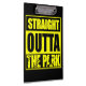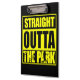 Impreso en amarillo softball, este diseño de Straight Outta The Park incluye costuras de softball y una silueta de un bateador de bola de tiro balancín balancéandose para las vallas.