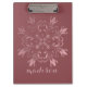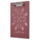 Portapapeles Personalizado: Patrón Floral con Florecimiento y Remolinos Elegantes / Fondo Rosa Coordinado / Personalización de Nombre con Letra Moderna
