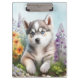 Carpeta De Pinza Flores de acuarela y Husky Siberiano