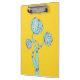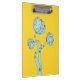 Flores mecánicas portapapeles con un divertido ilustracion vectorial extraño de flores azules que se parece a lotos con pétalos hechos de placas de circuitos electrónicos sobre fondo amarillo personalizable. Este diseño relacionado con la tecnología es genial para un chica geek.