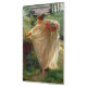 Este diseño presenta una pintura del artista inglés Sir Edward John Poynter (1836-1919), que ejerció como presidente de la Real Academia de Artes. Muestra a una encantadora joven que lleva puesto un vestido diafanoso de color crema hecho de tela fina. Los contornos y curvas de su hermoso cuerpo se pueden ver a través de la ropa. La mujer camina en un idílico rural mientras recoge algunas flores rojas que crecen en la ladera de la colina. Ella tiene una canasta en una mano que está usando para reunir las brillantes flores de colores que ha recolectado. Es una representación increíblemente impresionante de la belleza femenina y de los placeres de la naturaleza. Hay hierba creciendo en las colinas y rellenos que rodean a la joven, y hay un grupo de árboles creciendo en el horizonte. La obra original fue pintada por Edward Poynter en 1880.