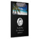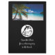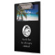 Silueta de delfín negro saltando sobre un monograma con un selfie, foto o imagen personalizado. Una idea para el fiesta de la playa para cualquier evento. Más bien es un cumpleaños, una fiesta de soltero o simplemente un día relajante en la playa o el mar.