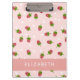 Patrón de fresa rosa con nombre personalizado. Hace un lindo regalo para los chicas. Diseñado e ilustrado por Kristine Lee Designs. Para obtener más información sobre nuestra marca, visite www.kristineleedesigns.com