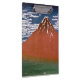 La escena capturada en la huella japonesa de un bloque de madera, "Buen Viento, Limpio Mañana" (también conocida como "Fuji Rojo" o "Aka Fuji"), es una impresionante exhibición del Monte Fuji bañado en los vibrantes tonos del amanecer. Esta obra es parte de la famosa serie de Katsushika Hokusai, "Treinta y seis vistas del Monte Fuji", creada entre 1830 y 1832. — Una huella de madera, también conocida como mokuhanga (木 版 画) en japonés, es una forma de arte única creada por el dibujo de un bloque de madera. Las porciones altas del bloque de madera se entintan y se presionan sobre el papel para transferir la imagen. Esta técnica da lugar a impresiones conocidas por sus líneas de negrita, contrastes agudos y áreas planas de color. — El "Fuji Rojo" de Hokusai utiliza magistralmente esta técnica. El majestuoso Monte Fuji domina la escena, su pico cubierto de nieve prístina que brilla contra el cielo azul claro. Las nubes agudas se deslizan a través de la extensión del azul celeste, dando a entender una suave brisa. El aspecto más llamativo de la impresión es la montaña en sí, bañada en un rojo intenso que evoca las ardientes brasas del amanecer. Este uso dramático del color es un sello distintivo del trabajo de Hokusai e infunde la escena con una cualidad casi mítica. — Las estribaciones del Monte Fuji se desenvuelven como un tapiz de verde exuberante, sugiriendo bosques densos llenos de vida. Esta manta verde contrasta maravillosamente con la cruda belleza del pico nevado, añadiendo profundidad y dimensión a la escena. Aquí, bajo la atenta mirada del Monte Fuji, un ecosistema prospera, su rico follaje que insinúa las maravillas ocultas que se desarrollan en la base de la montaña. Este verde tapiz oculta un bosque legendario conocido como Aokigahara Jukai (青 木 ヶ 原 海), que se traduce como "Mar de Árboles" en inglés. Esta inmensa extensión de árboles no sólo es famosa por su belleza, sino también por su folclore. — Susurros de leyenda del Jukai Aokigahara siendo un lugar imbuido de una energía espiritual, algunos dicen incluso uno melancólico. El folklore cuenta de yurei (幽 霊), espíritus vengativos, que permanecen entre los árboles densos. Ya sea historia de verdad o de cacería, el denso follaje del Aokigahara Jukai y sus inusuales propiedades magnéticas, que pueden causar el mal funcionamiento de las brújulas, contribuyen a su misterioso aura. — Parte de 36 Vistas de la serie Monte Fuji del artista Katsushika Hokusai, que data de 1830 a 1832. El autor murió en 1849, esta obra es de dominio público en su país de origen y en otros países y zonas donde la duración del derecho de autor es superior a 100 años.