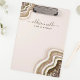 Agrega un toque de lujo a tus suministros de oficina con esta carpeta de clip con brillo dorado champán y ágata marrón. Ideal para profesionales de la belleza, oficinas corporativas y espacios de trabajo creativos, esta carpeta de clip personalizada combina funcionalidad con un diseño inspirado en geodas. Perfecta para aquellos que buscan elementos esenciales prácticos para negocios que también reflejen su estilo único.