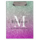 Girly Aqua Blue Pink Ombre Purpurina Monograma Portapapeles
