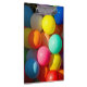 Un racimo, un montón de globos de juguete brillantes y coloridos contra el fondo de un bosque oscuro. Fotografía texturizada.