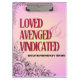 Walk boldly in your divine identity. This design features the powerful declaration: "Loved, Avenged, & Vindicated". Inspired by the promises of God, this product is perfect for Christian women who know God sees their struggles, fights their battles, and restores their honor. Whether you're journaling through healing, sipping your morning coffee, or walking into a new season—this message is your reminder: You are never alone. God fights for you. Makes a thoughtful gift of hope, healing, and strength. Inspired by Deuteronomy 32:35.