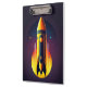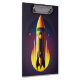 A rocket ship from the Golden Age of Science Fiction--the 1950s and 60s--that could have been on the cover of a pulp magazine of sci-fi stories, makes this clipboard perfect for anyone who loves science fiction, outer space, and space exploration.