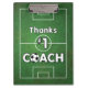 Cuando tu entrenador de fútbol destaca por encima del resto, este regalo, recuerdo y regalo es perfecto para agradecerte. Un campo de fútbol de hierba es el fondo de las palabras Gracias entrenador. Una pelota de fútbol se llena para la O.