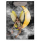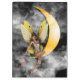 Una hada hermosa que se sienta en la luna anaranjada entre las nubes que dispersan el polvo de hadas. Disponible en los colores de fondo múltiples para la mayoría de los productos.