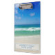 Una hermosa fotografía del océano tomada en el destino ideal de vacaciones de Destin, Florida, hace un portapapeles personalizado de una empresa de playa para un negocio costero. Las hermosas aguas verdes de Sandestin se adentran en la arena de la orilla del mar, bajo los serenos cielos azules, para hacer el perfecto diseño fotográfico de las vacaciones para su corporación de vacaciones de la isla tropical.