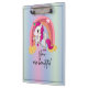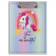 Un lindo unicornio con pelo rosado, cuerno de arco iris y alas blancas se alza felizmente bajo un arco iris, esparciendo alegría y belleza.