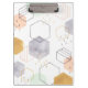 Hex Scatter I de Gabrielle McClure. Hexagones de varias formas y diseños esparcidos por un fondo blanco.