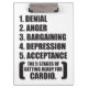 Las 5 etapas de prepararse para el cardio: negación, ira, negociación, depresión, aceptación.