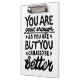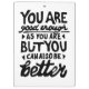 Impresión en lino blanco y negro de una cita motivacional que dice "Eres suficientemente bueno, pero siempre puedes ser mejor". Brinda un estímulo para que la gente sepa que la autoaceptación y el crecimiento van de la mano.