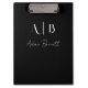 Portapapeles Personalizado moderno en negro con nombre e iniciales. Personalizar con iniciales y nombre para crear el portapapeles personalizado.
