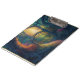 El portapapeles artístico de doble cara presenta una imagen de arte digital generada por IA de una puerta mágica de jardín forestal con rayos solares en el fondo.