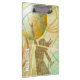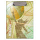 Portapapeles de voleibol de chicas deportivos con naranja de verano soleado, compuesto de gráficos de voleibol verde y dorado con voleibol femenino saltando a la red - de katz_d_zynes