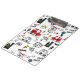 ,A playful, cartoon-style city pattern featuring buses, cars, helicopters, traffic lights, buildings, and fun doodle text like “Beep Beep,” “Wuz Up?” and “Go,” in bright red, yellow, blue, and black tones.