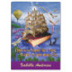 El poema de Emily Dickinson que comienza, "allí no es ninguna fragata como un libro para tomarnos que las tierras lejos" se imaginan en una escena de la fantasía con este diseño original. La cita aparece en la parte inferior, debajo de un velero masted hecho de un libro antiguo.