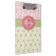 Delicados encajes rosados y rayas de papel pintado verde primaveral con rosas inglesas adornan este elegante diseño femenino. Personalizado con su nombre y inicial.