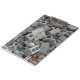 Este diseño del portapapeles presenta una foto de escombros de demolición que contiene ladrillos, bloques de concreto y otros restos de construcción.