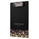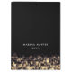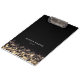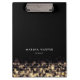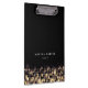 El portapapeles negro de moda presenta dos líneas de texto personalizado con letras blancas modernas, acentuadas por cadenas entrecruzadas de luces de cuerda doradas con un efecto bokeh borroso. El diseño se repite al revés.