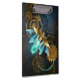 luciérnagas de vapor con alas transparentes azules y bombilla verde sobre fondo gastado, marrón y texturado. Estilo Steampunk.