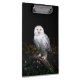 Fotografía de retrato animal de majestuosa búho de nieve parado en una rama.