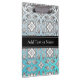 Portapapeles personalizado de Mandala Zen negro, azul acuático y blanco