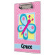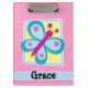 Carpeta De Pinza Mariposa azul en franjas rosadas y blancas