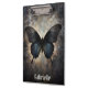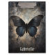 Una hermosa mariposa negra y azul de medianoche sobre un fondo gris texturado crea un magnífico portapapeles de estilo gótico. Personaliza tu nombre en la parte inferior. La espalda es negra sólida.