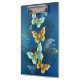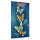 Composición de vuelo, joyería, oro y mariposas oscuras sobre fondo de joyería texturada. Mariposa dorada.