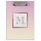 Este moderno portapapeles presenta un monograma dorado subió sobre mármol blanco y fondo rosado.