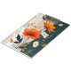 Las amapolas pintadas en naranja se combinan con flores blancas y bayas naranjas en un fondo mediático mixto de azul oscuro gris y almendras. Muy bonito, moderno y abstracto.