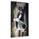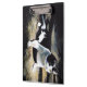 Melvin el gato Bella Artes pintura acrílica de Lilly Fluger. Es un gato de esmoquin blanco y negro que se encuentra al aire libre en una de sus aventuras de camping. Melvin siempre tenía su propia puerta de gato en cada camper mientras explorábamos hermosos parques estatales y nacionales de Estados Unidos.