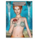 Hermosa sirena sosteniendo un erizo invertebrado oceánico sobre el fondo azul de fantasía oceánica. Un regalo perfecto para todos los amantes de los cuentos de hadas y la fantasía