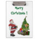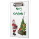 "FELIZ NAVIDAD" SANTA CLAUS Y ELF POR EL ÁRBOL DE NAVIDAD CON PRESENTES