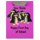 Feliz primer día, disfruta de tu primer día de escuela, Feliz primer día de clases, adorable pingüino, Personalizado para niños, Cuaderno y Papelería, Mi amigo el pingüino, Eventos escolares, Artículos de oficina y escolares, sorpresa para niños, te desea una buena suerte. Puede cambiar el fondo o el texto.