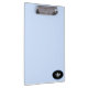 Este portapapeles se muestra en un azul suave en polvo con un óvalo en la esquina inferior derecha. Dentro del óvalo hay un fondo negro y una foto en color de color plateado de una corona y un borde azul delinea este óvalo. La parte posterior tiene el mismo oval con la corona en la parte central inferior de la tarjeta clip. Personalice este elemento si lo desea con su propio nombre, logotipo o frases y cambie el color si lo desea. Personalizar este artículo o compre como está diseñado.