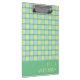 A modern checker clipboard featuring a creative checkerboard pattern in a pastel blue, green and lime color palette, with a green color block to personalize with your name on the front and back. You can also add a recipient’s name and gift it to someone special. A chic and trendy clipboard that feels modern, minimalist and beautiful to use and carry. Use it to hold notes or sketches while adding personality and creativity to your workspace. Thanks for viewing an Eria Daisy Art design!